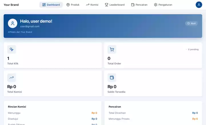 Dashboard afiliasi untuk konsumen kamu.