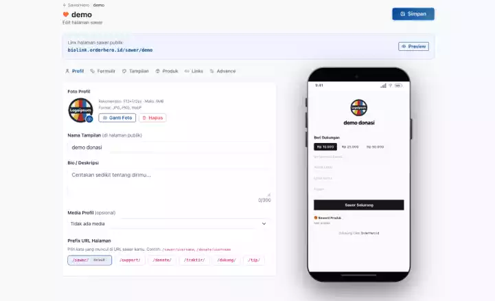 Terima sawer dan donasi dengan custom reward.